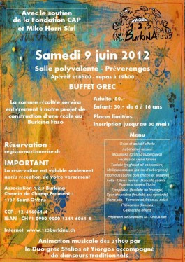 Spectacle grec et repas de soutien "buffet grec" – Préverenges le 9 juin 2012
