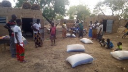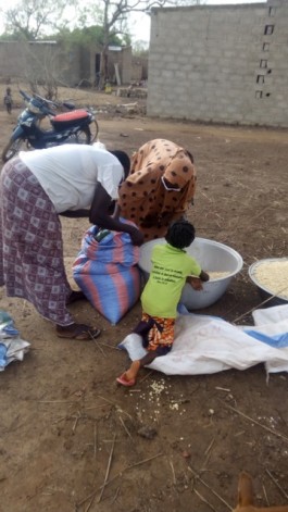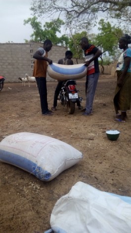 Voici les actions en images :• Remise des fournitures scolaires.• Stock de vivre (20 sacs de maïs).• Remboursement aux parents en situation précaire la scolarité de leur enfant.«Bonjour à tous,Heureux de vous informer que hier nous avons fait la distribution des vivres.Tout s’est bien passé à la grande satisfaction des parents.Ils sont heureux et me chargent de traduire leur reconnaissance aux donateurs, l’équipe de 123 Burkina Faso.Quelques photos pour vous et merci!Ounténi.»